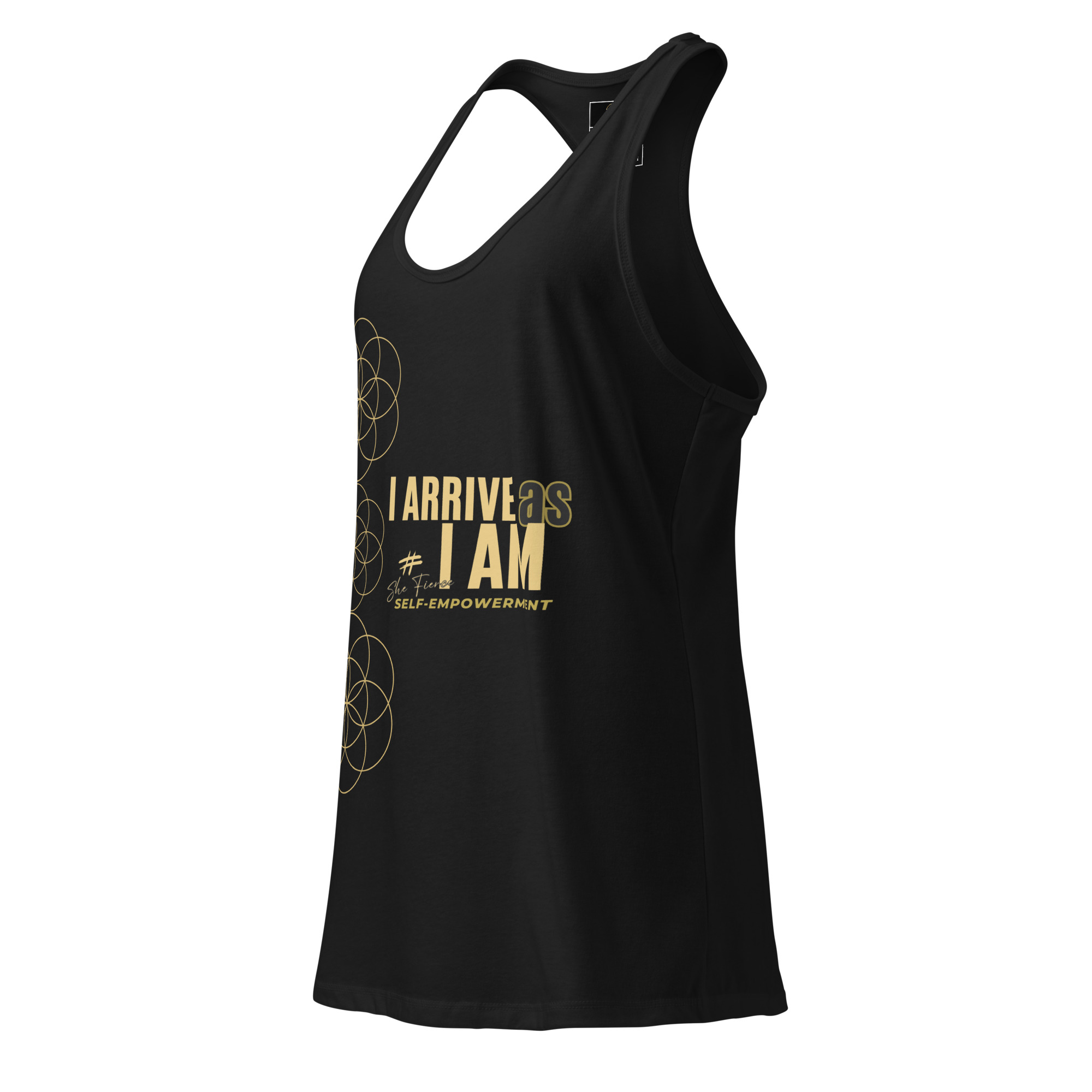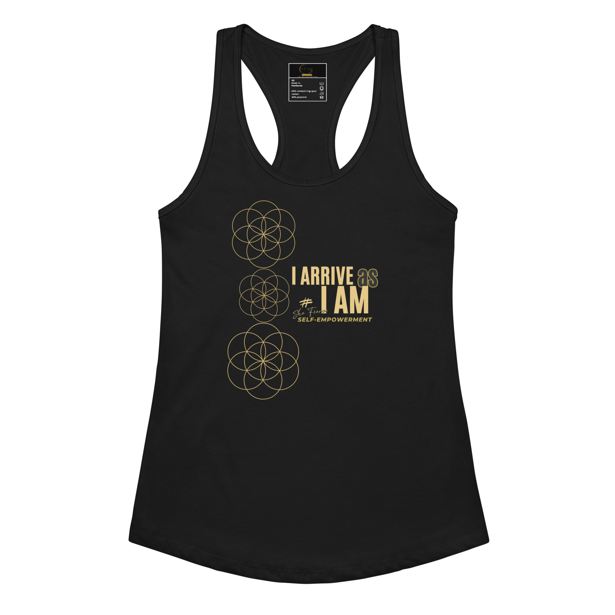“I Arrive as I AM” Fitted Racerback Tank – Black