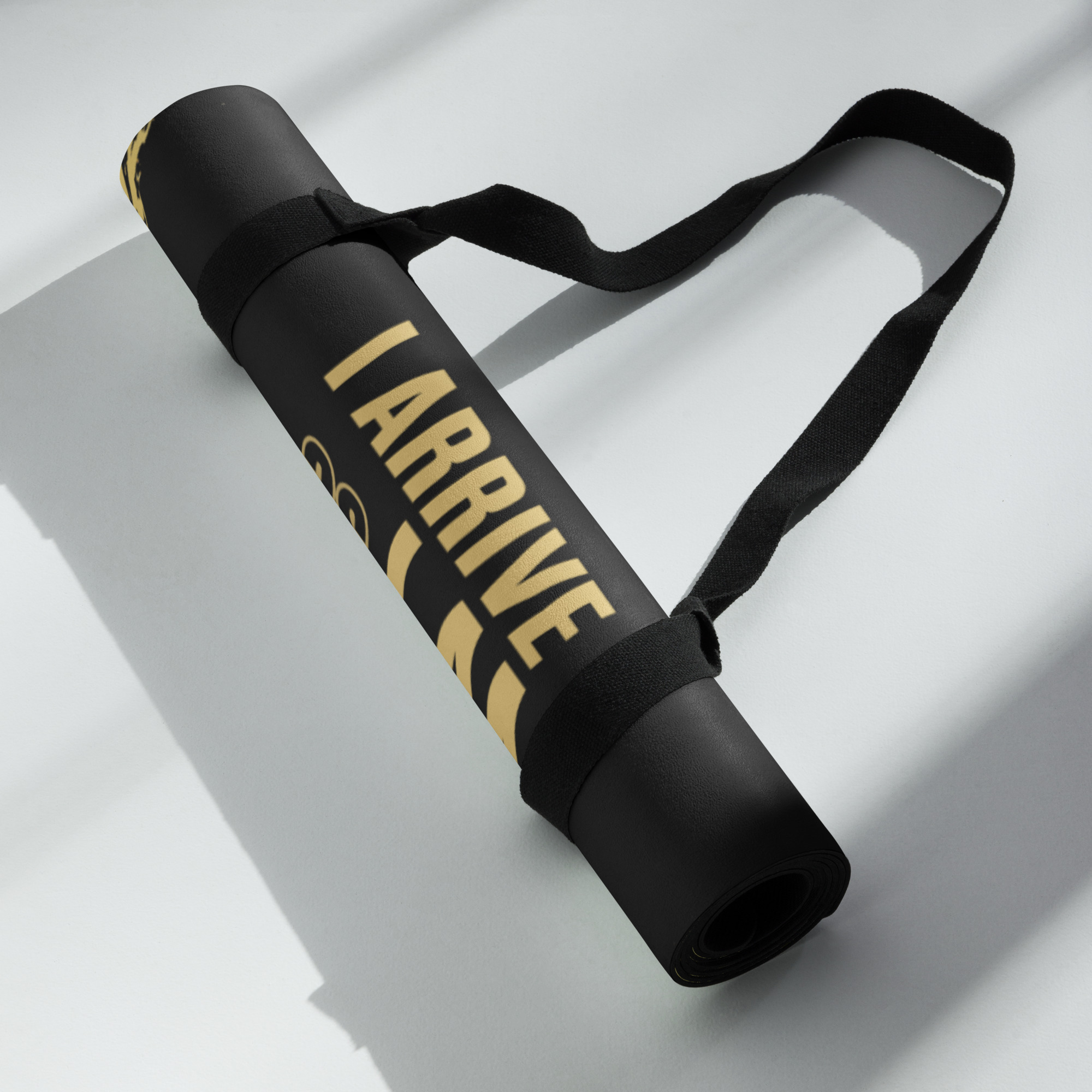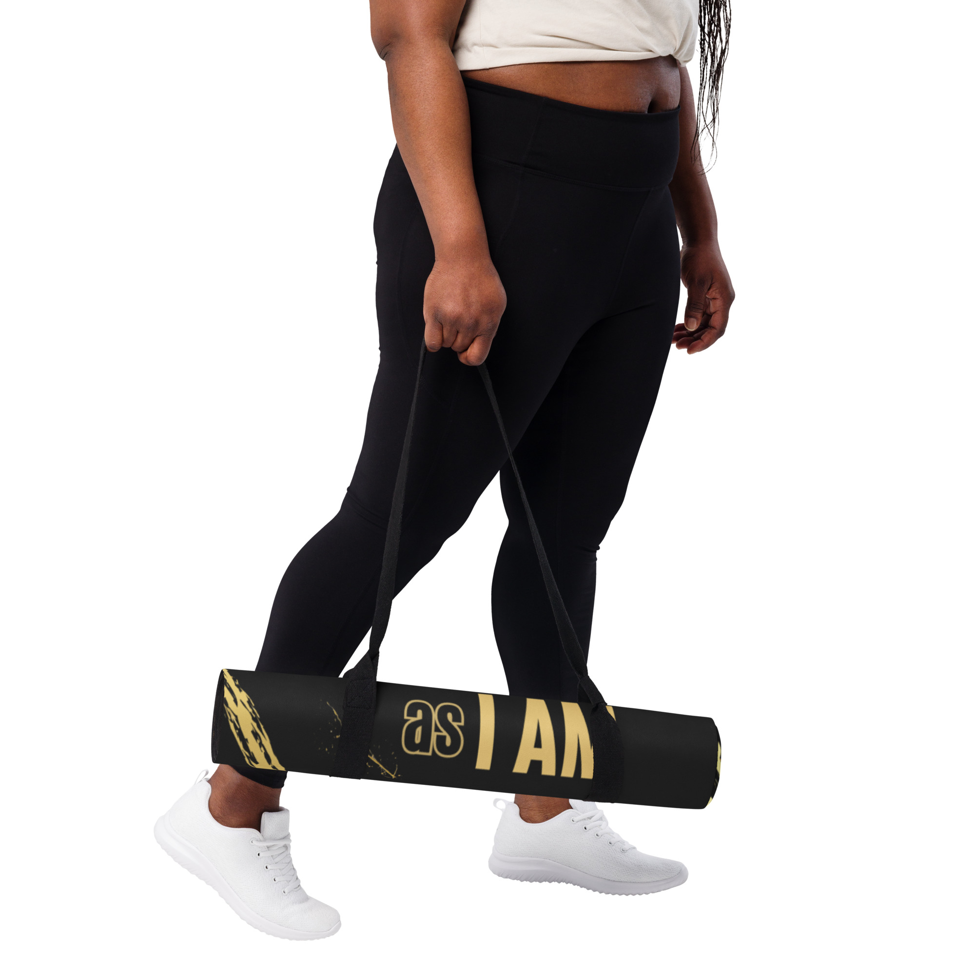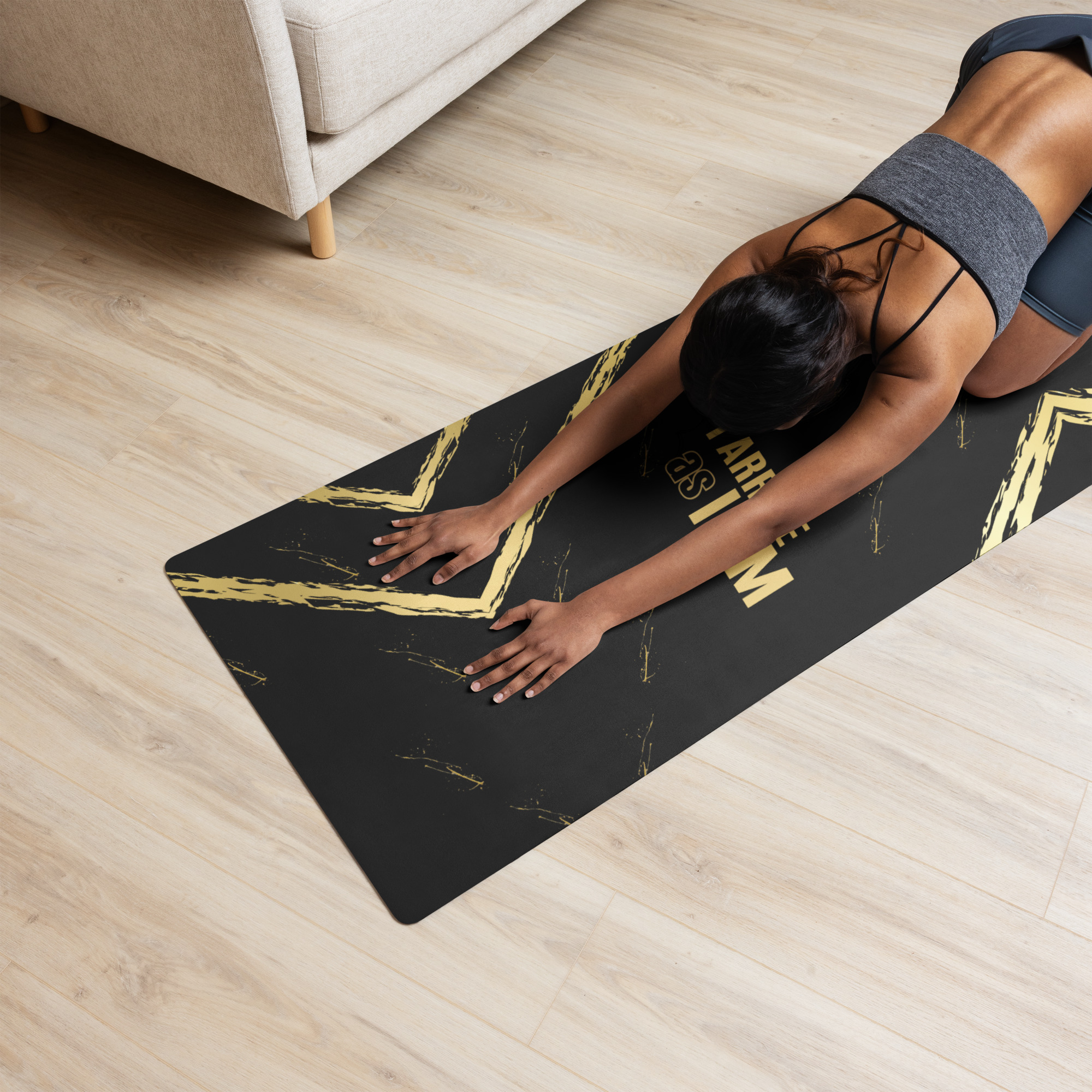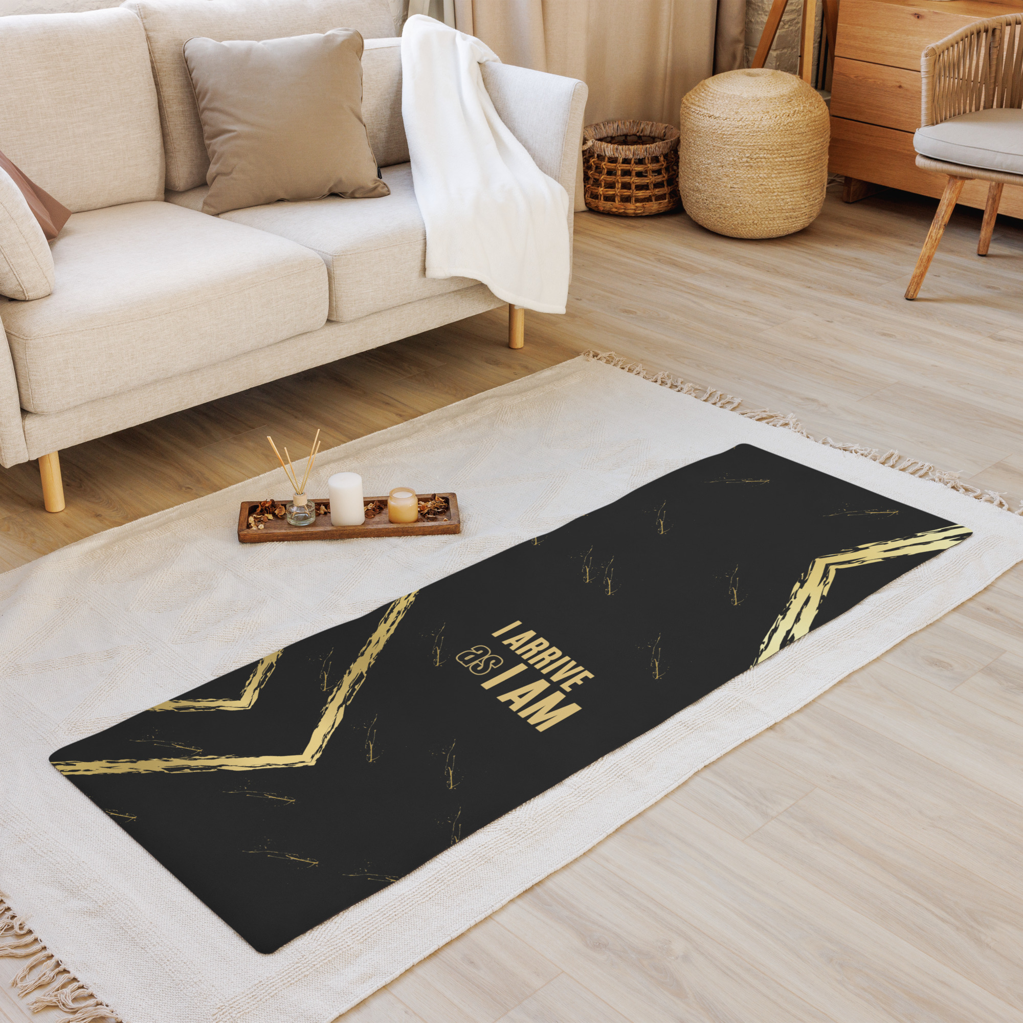 Centered with the golden affirmation “I Arrive as I AM”, and accented with flowing gold streaks that echo your natural rhythm, this mat reflects the beauty of showing up whole—unapologetic, embodied, and real. It transforms your practice into a gentle act of self-honoring, where arrival is the intention.