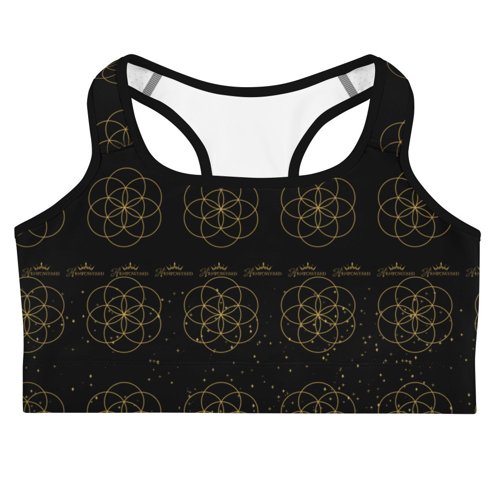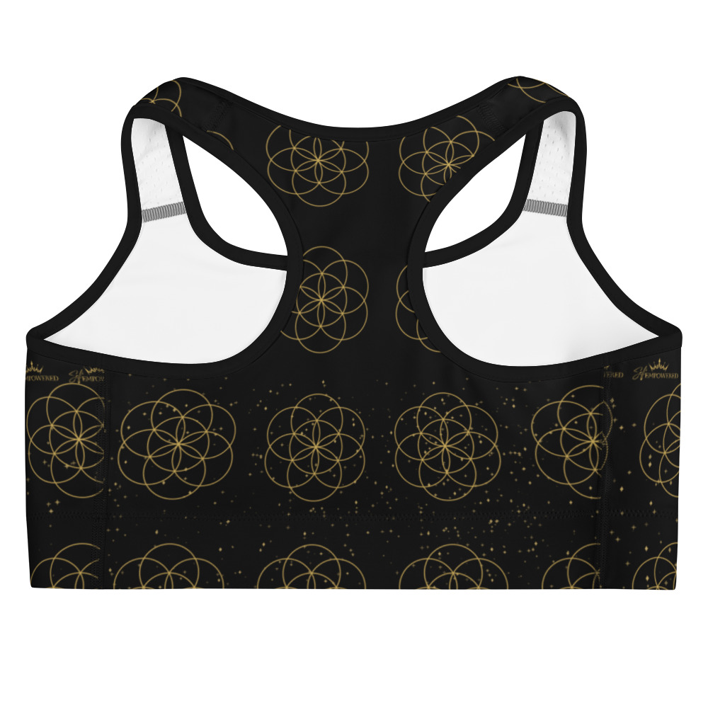 This gorgeous sports bra is your wearable reminder that within you, seeds of power are always ready to bloom. Made from moisture-wicking material that stays dry during low and medium intensity workouts, it embraces you in comfort while holding you in unwavering support. The wide elastic band anchors your strength, while the double-layered front and reinforced straps keep you steady in every stretch, lift, and leap.