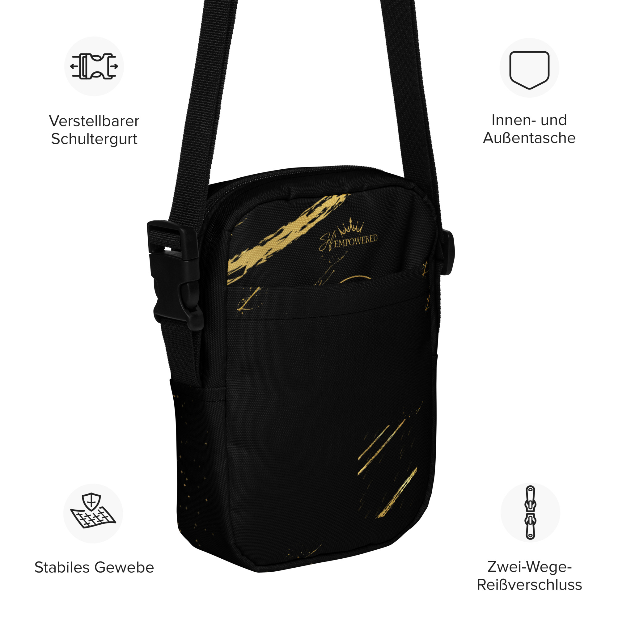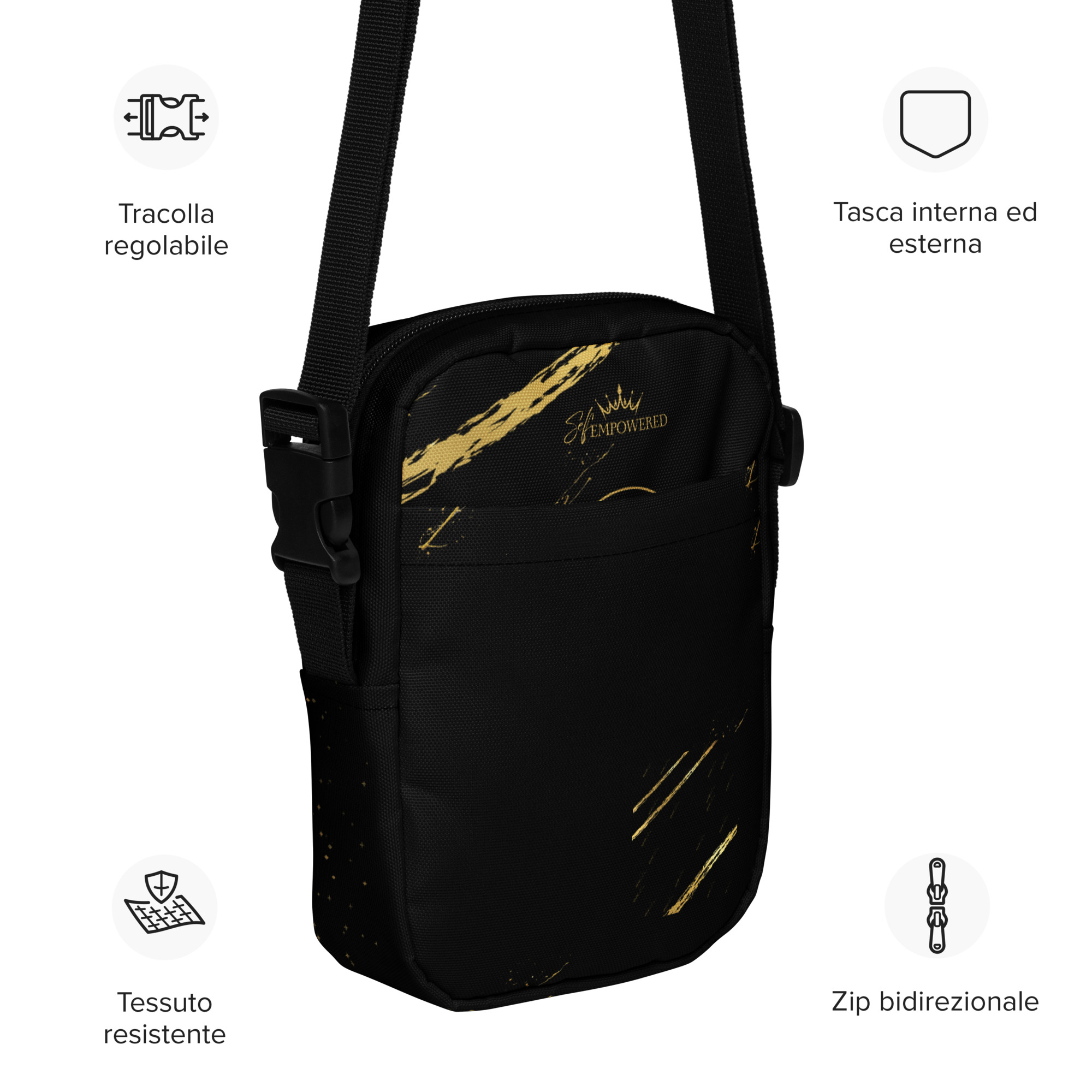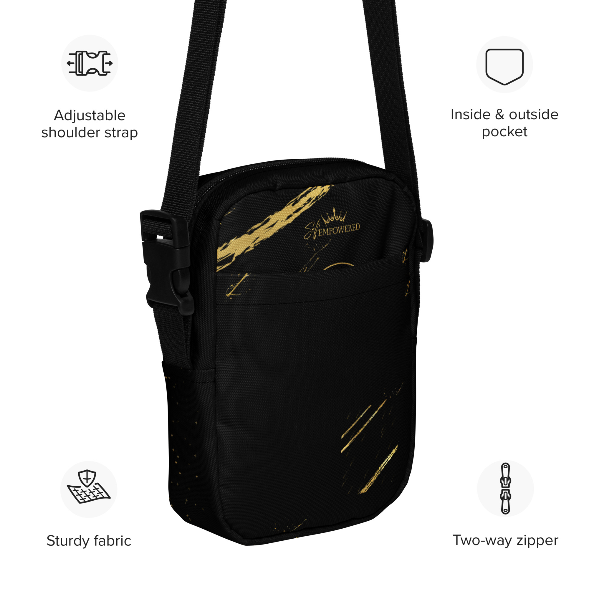 This sturdy, stylish crossbody bag is designed for the goddess on the move. With adjustable straps, a water-resistant finish, and two spacious pockets, it keeps your belongings safe and your hands free—whether you’re hiking mountain trails, dancing at festivals, or navigating everyday adventures. The firm, durable fabric holds its shape while staying lightweight, making it as practical as it is empowering.