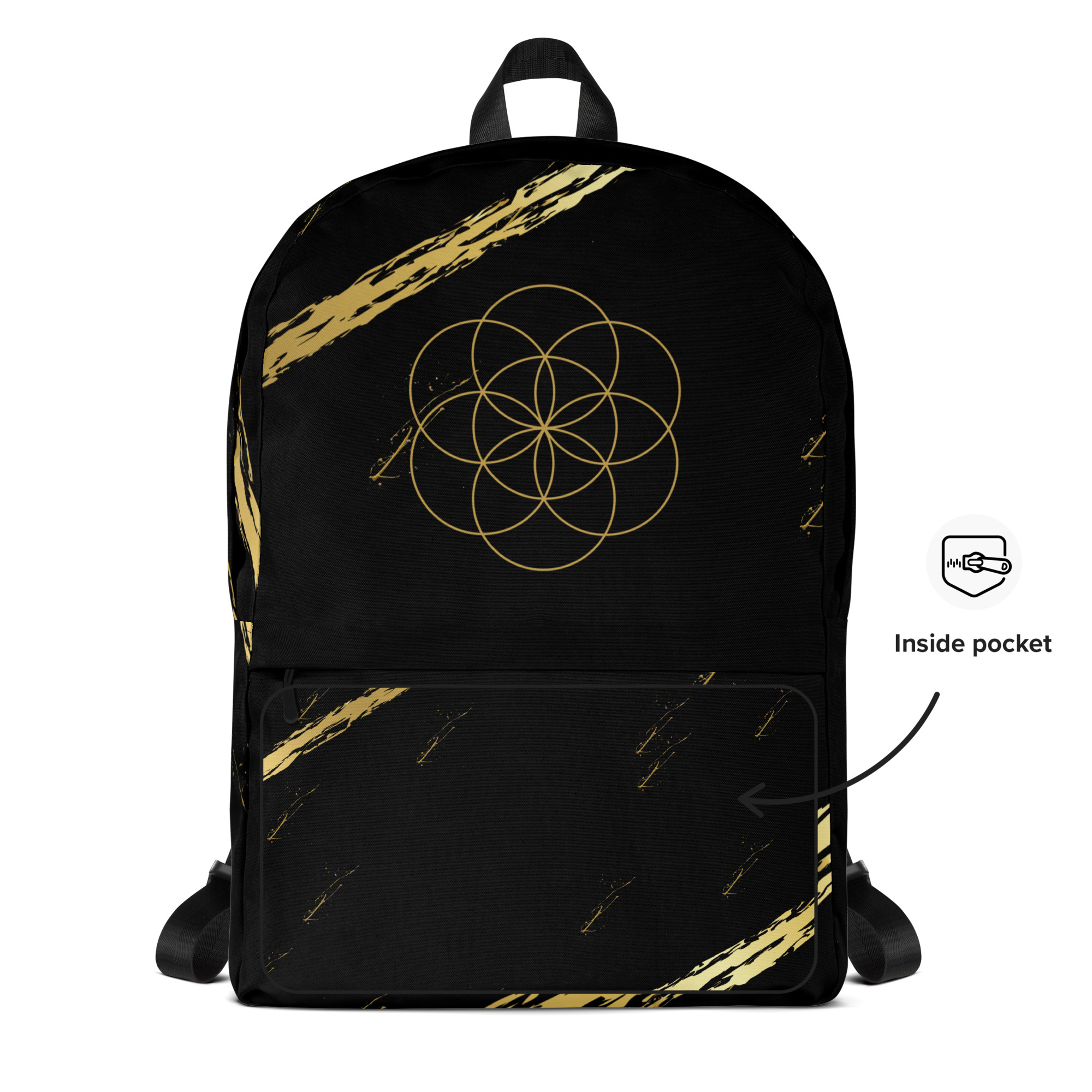 Perfect for daily use, rituals, sports, or creative adventures, this medium-size backpack blends spiritual symbolism with practical design. Spacious and strong, it carries your essentials with grace and power, while the water-resistant material keeps them protected.